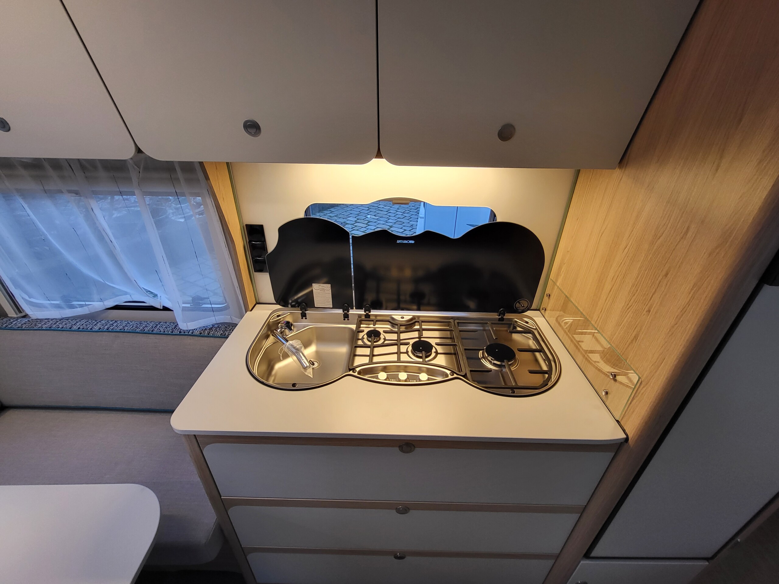 - Gasflaschenkastenklappe platzsparend parallel nach oben schwenkbar