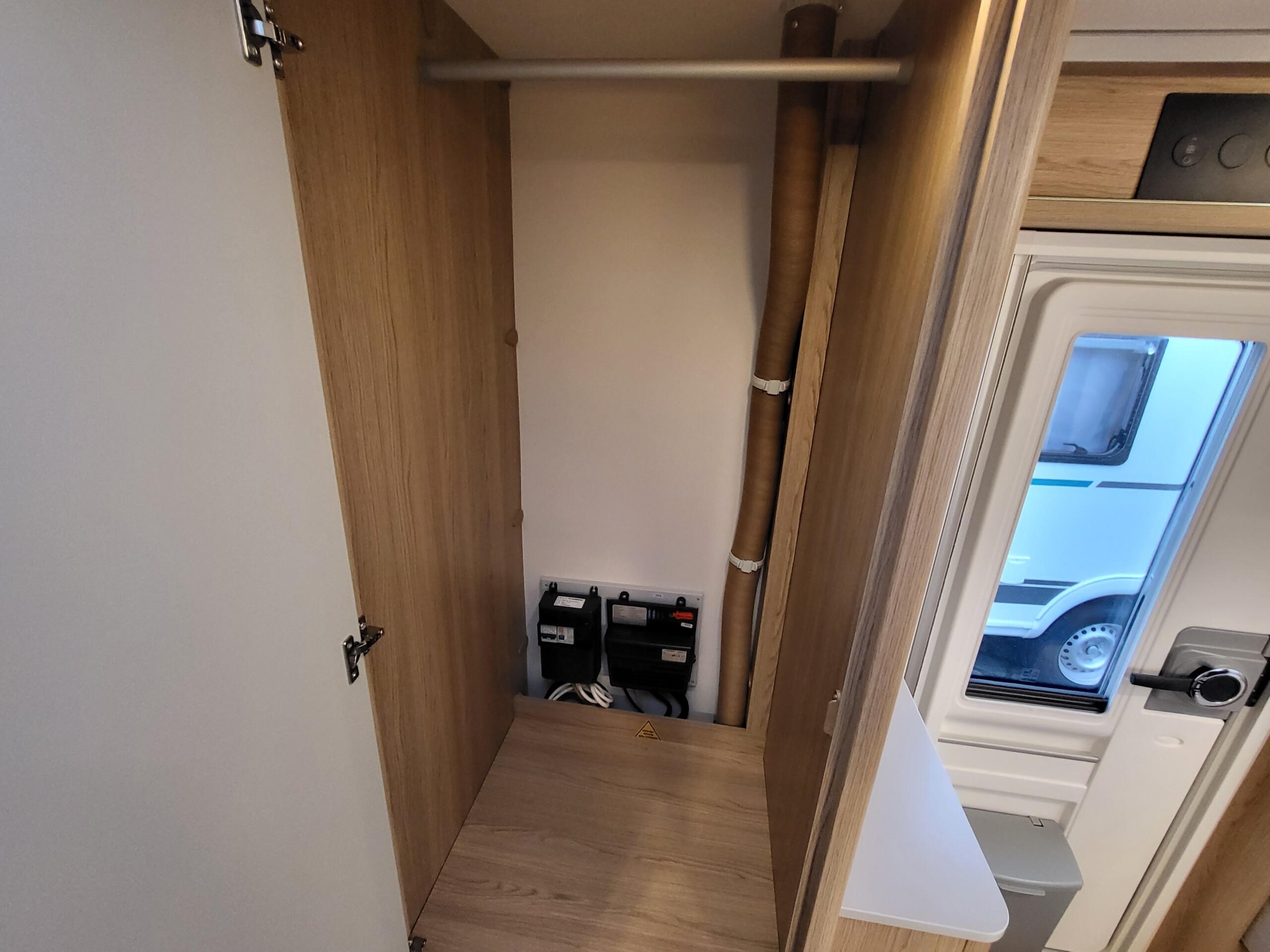 - Kompakter Elektroblock mit 230 V Sicherungsautomat und 12 V Sicherung im Kleiderschrank inklusive leistungsstarkem Umformer 340 W